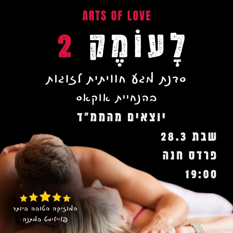 ✅ לומדים באמת את סודות האהבה ✅ יוצרים סנכרון מושלם ✅ לומדים טכניקות מגע מתקדמות, קלות ליישום ומאוד מעוררות ומענגות. ✅ שולטים בדינמיקות מגע משחקיות שמציתות אש לאורך זמן. ✅ איך לבטא תשוקות, רצונות וגבולות בצורה מעוררת וסקסית. ✅ איך להעניק מגע שמעניק ביטחון ומעורר מינית במקביל. ✅ סשן מרכזי של מגע חושני ואירוטי בין בני הזוג. ✅ איך להניע אנרגיה מינית דרך מוזיקה ואווירה.
