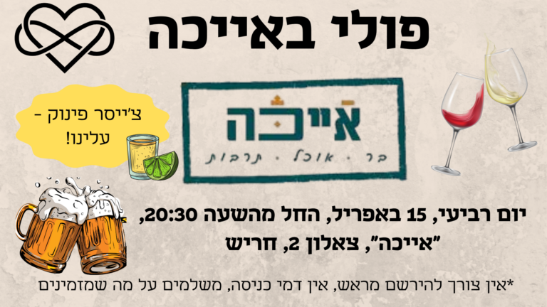 ניפגש ב-20:30 בפאב אייכה בחריש, נשתה, נאכל, נצחק ונכיר